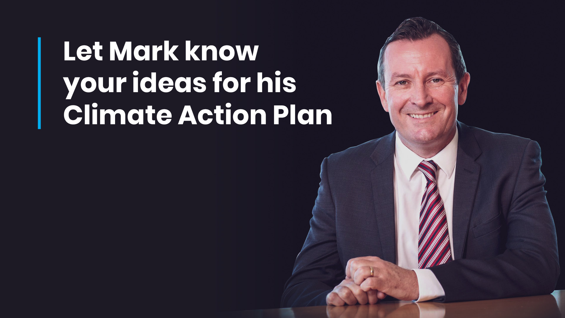 The benefits of action on climate change in WA are huge, but businesses, communities and households need support to embrace these opportunities. Now is your chance to let Mark know what you want to see happen to support action on climate change and clean jobs here in WA.